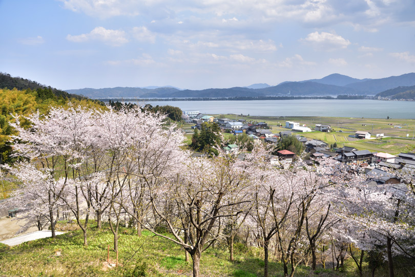天橋立を望む小高い丘。頂きには小さな社殿。