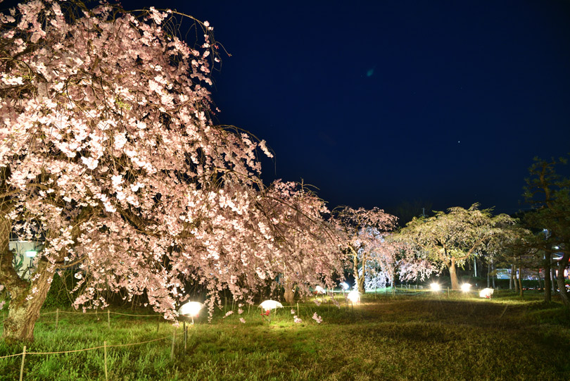 ライトアップされた枝垂桜や八重枝垂桜についうっとり。。。