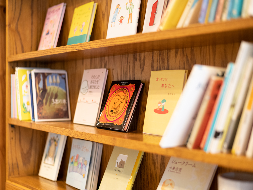 ロビーには世界の絵本ライブラリーも。貸し出しもしておりますのでお部屋でもゆっくり絵本の世界