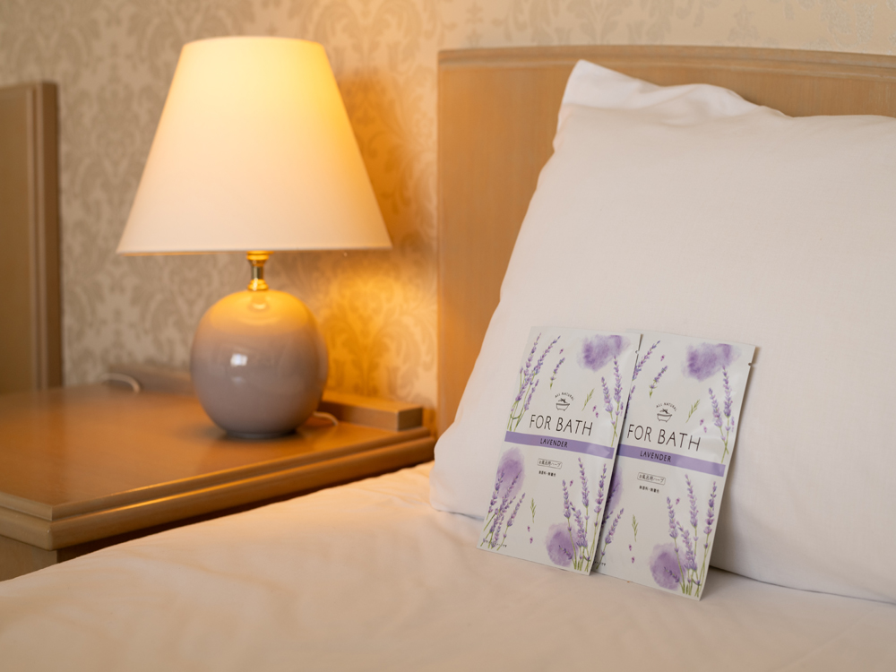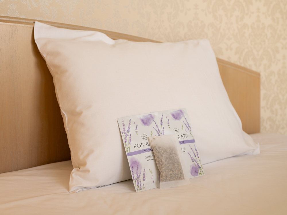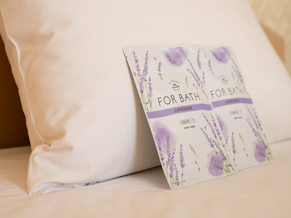 ハーブの自然な香りが心地よい眠りを誘うハーブの香り袋「フォアバス」のラベンダーを各お部屋に