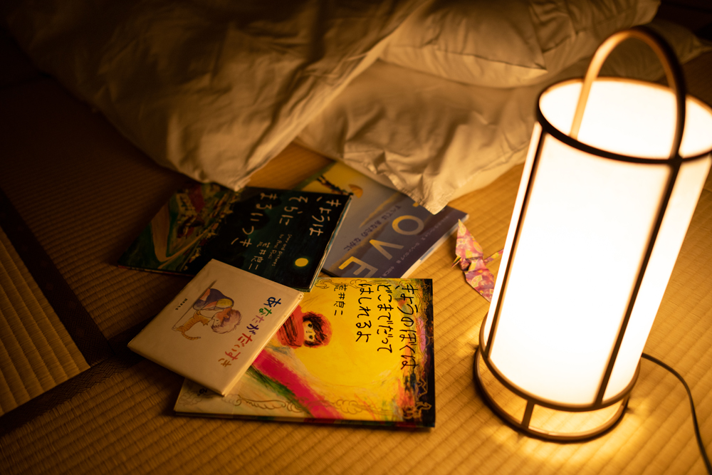 ロビーには世界の絵本ライブラリーもあり、貸し出しもしておりますのでお部屋でもゆっくり絵本の世界を楽しむことができます。